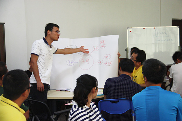 體驗課由中國地質(zhì)大學博士、子謙國際創(chuàng)業(yè)教育學院首席專家、河北地質(zhì)大學創(chuàng)新創(chuàng)業(yè)教育學院執(zhí)行院長與教學總監(jiān)朱燕空作為主講。體驗課以新常態(tài)下雙創(chuàng)發(fā)展及市場拓展為背景,就創(chuàng)業(yè)思維內(nèi)涵、體驗創(chuàng)業(yè)思維之旅、創(chuàng)業(yè)思維與管理思維對比,與學員們探討交流雙創(chuàng)發(fā)展之路,布置各小組“制造未來”任務,設想了創(chuàng)業(yè)之路所遇到各種機遇與困阻。朱院長表示,創(chuàng)業(yè)成長期,大部分創(chuàng)業(yè)青年不缺乏目標和想法,著實選擇一個有效的路徑去實現(xiàn),路徑有很多,每條路徑都代表著一種可能性,并且充滿了不確定性,關鍵在于如何找到有效的路徑,需要我們?nèi)バ袆印⒎此己驼{(diào)整;而不是過多的詳細規(guī)劃,注重逐步執(zhí)行。面臨不確定性,朱院長結(jié)合自身創(chuàng)業(yè)經(jīng)驗,與學員們探討分享創(chuàng)業(yè)新思維與企業(yè)管理模式,并運用了大量案例對市場拓展做指導。課堂最后,朱院長與學員逐個交流創(chuàng)業(yè)相關熱門話題。
