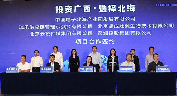2023年4月14日下午,“投資廣西 選擇北海”為主題的北海市招商引資座談會(huì)暨2023年中國(guó)電子北部灣信息港產(chǎn)業(yè)招商簽約儀式成功舉辦。在北海市委書記蔡錦軍,市委常委、常務(wù)副市長(zhǎng)譚秀洪,市委常委、秘書長(zhǎng)鄭定雄,經(jīng)開區(qū)管委會(huì)主任劉忠廣,中國(guó)電子北海產(chǎn)業(yè)園公司執(zhí)行董事徐俊男,長(zhǎng)江商學(xué)院老師徐汀、長(zhǎng)江商學(xué)院老師許耀公的見證下,完成了8個(gè)項(xiàng)目簽約,涉及高端信息服務(wù)、生物醫(yī)療、供應(yīng)鏈、投融資等領(lǐng)域建立戰(zhàn)略合作關(guān)系,共助北海產(chǎn)業(yè)高質(zhì)量發(fā)展。