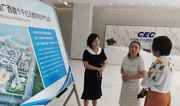 2023年7月19日上午,北海市市委常委、市紀(jì)委書記劉纓帶隊(duì)到中國(guó)電子北部灣信息港開(kāi)展“壯大實(shí)體經(jīng)濟(jì)推動(dòng)高質(zhì)量發(fā)展”調(diào)研。中國(guó)電子北海產(chǎn)業(yè)園發(fā)展有限公司副總經(jīng)理劉曉娟現(xiàn)場(chǎng)向劉纓書記匯報(bào)了信息港項(xiàng)目建設(shè)、運(yùn)營(yíng)情況。